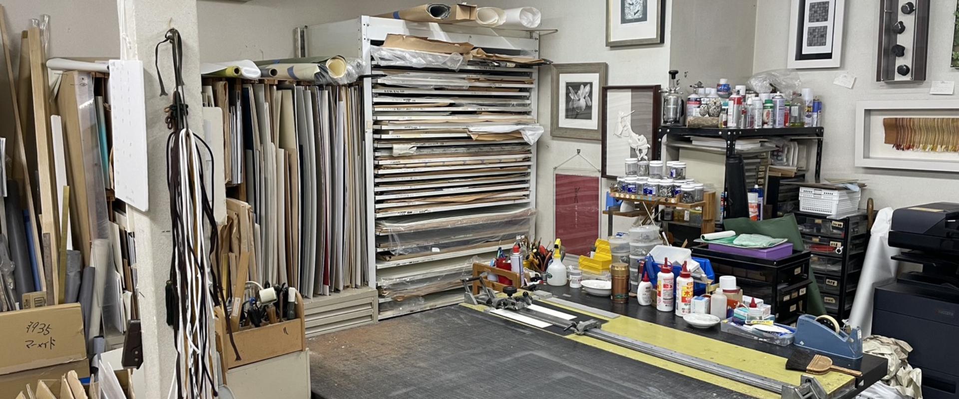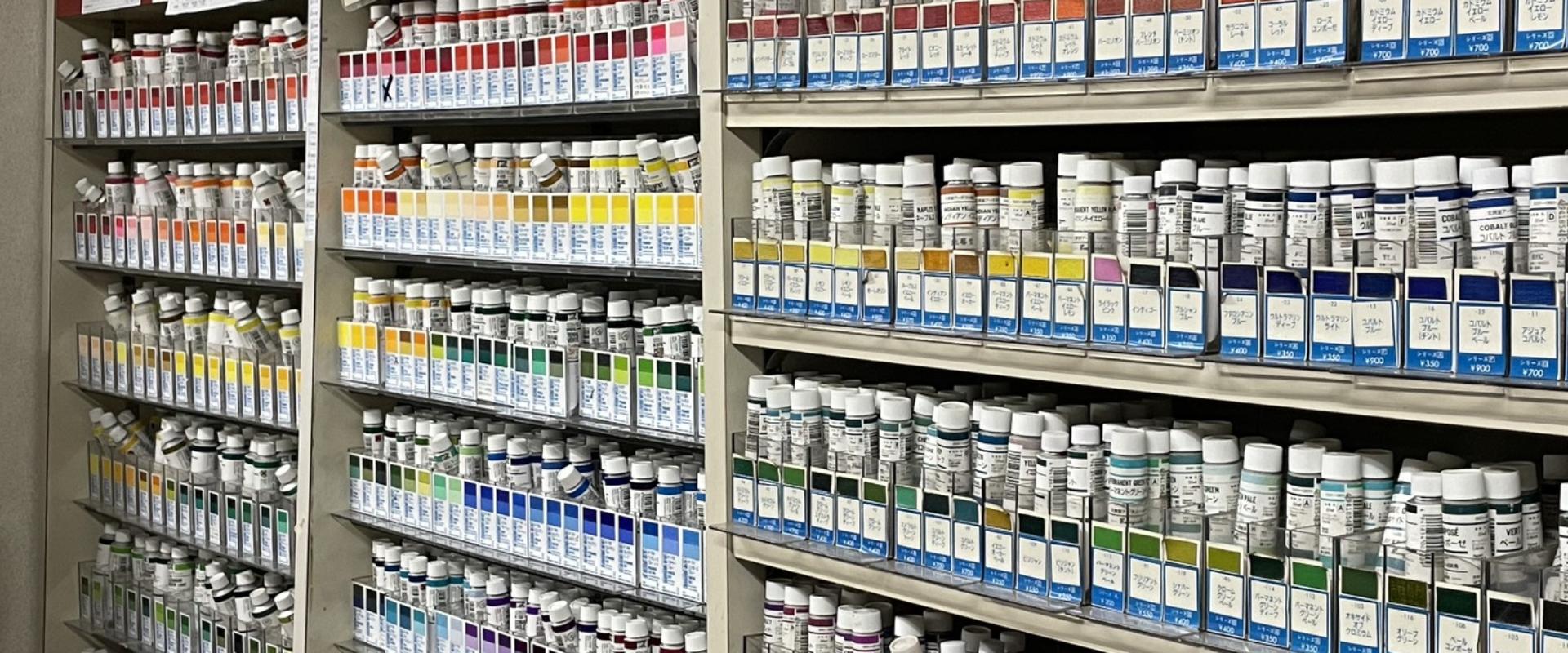 店舗では、水彩・油絵・日本画用の絵具や筆等の画材を幅広く取り扱い、額縁も各サイズの在庫を取り揃えておりますので、作品をお持ち頂きましたら直ぐに対応いたします。